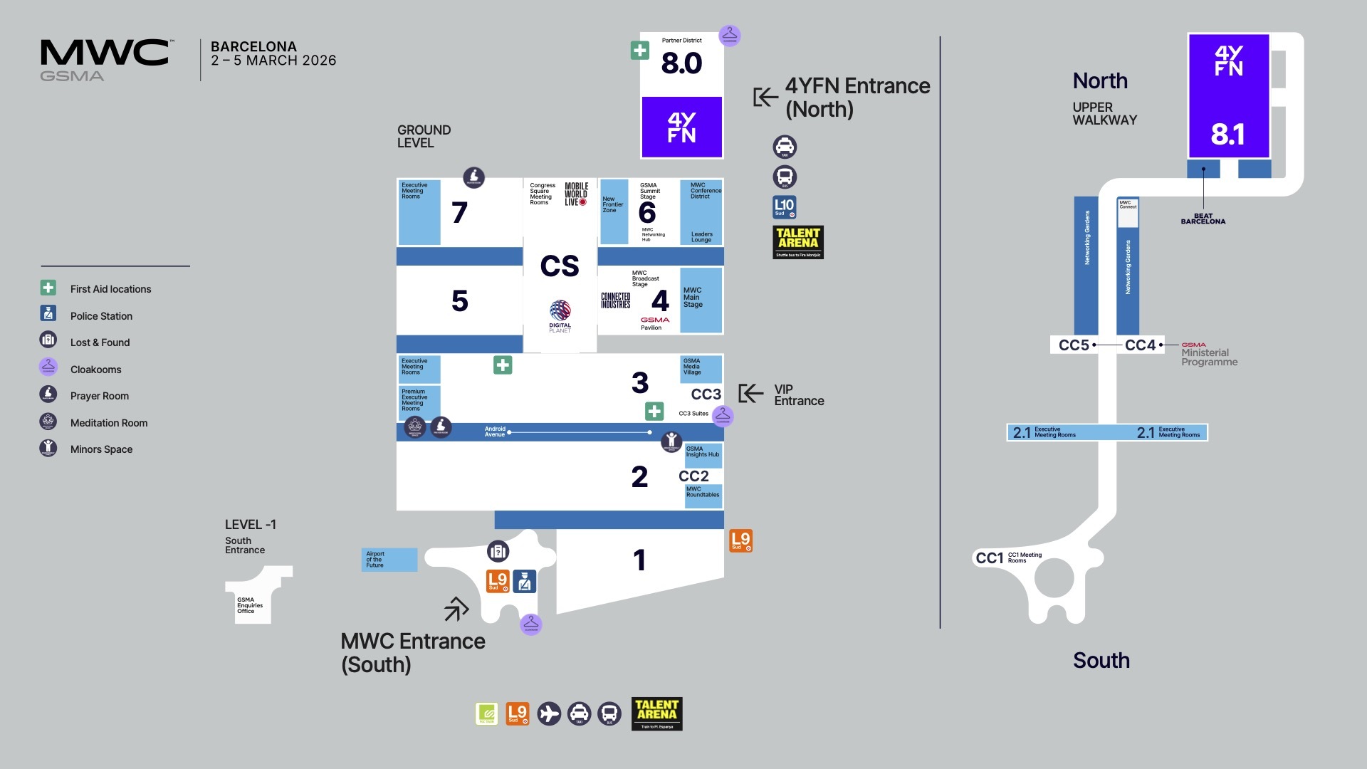 Facilities are available in Hall 3, next to the VIP and Congress Square entrances.