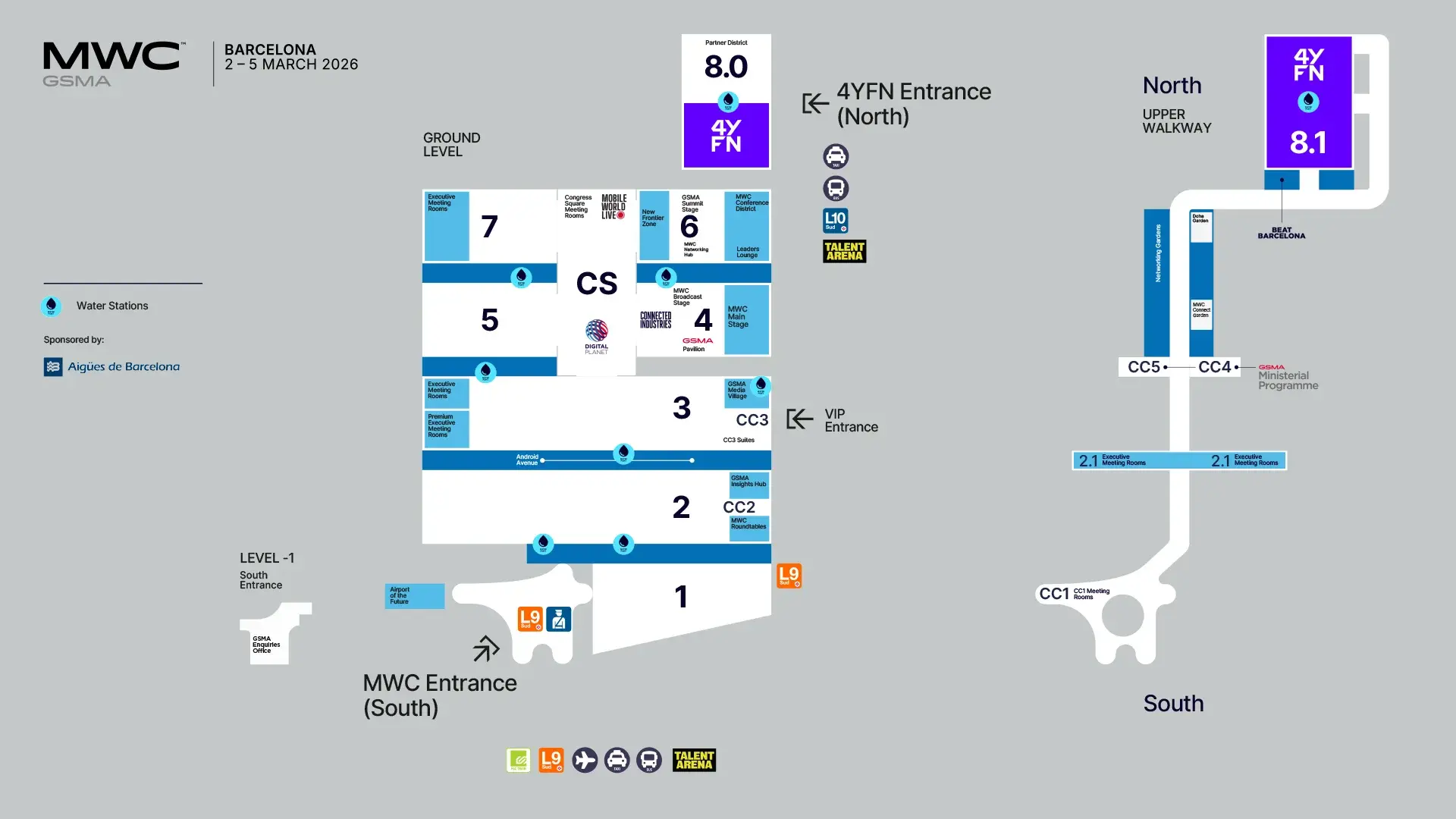 For MWC26, we've expanded our network of water stations to 34 locations across the venue, ensuring you stay refreshed wherever you are. Check the map below.